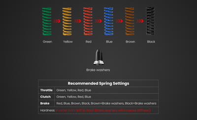 Our quick-change mechanism allows for easy and fast replacement of springs or elastomers, enabling seamless adjustments to the pedal feel.