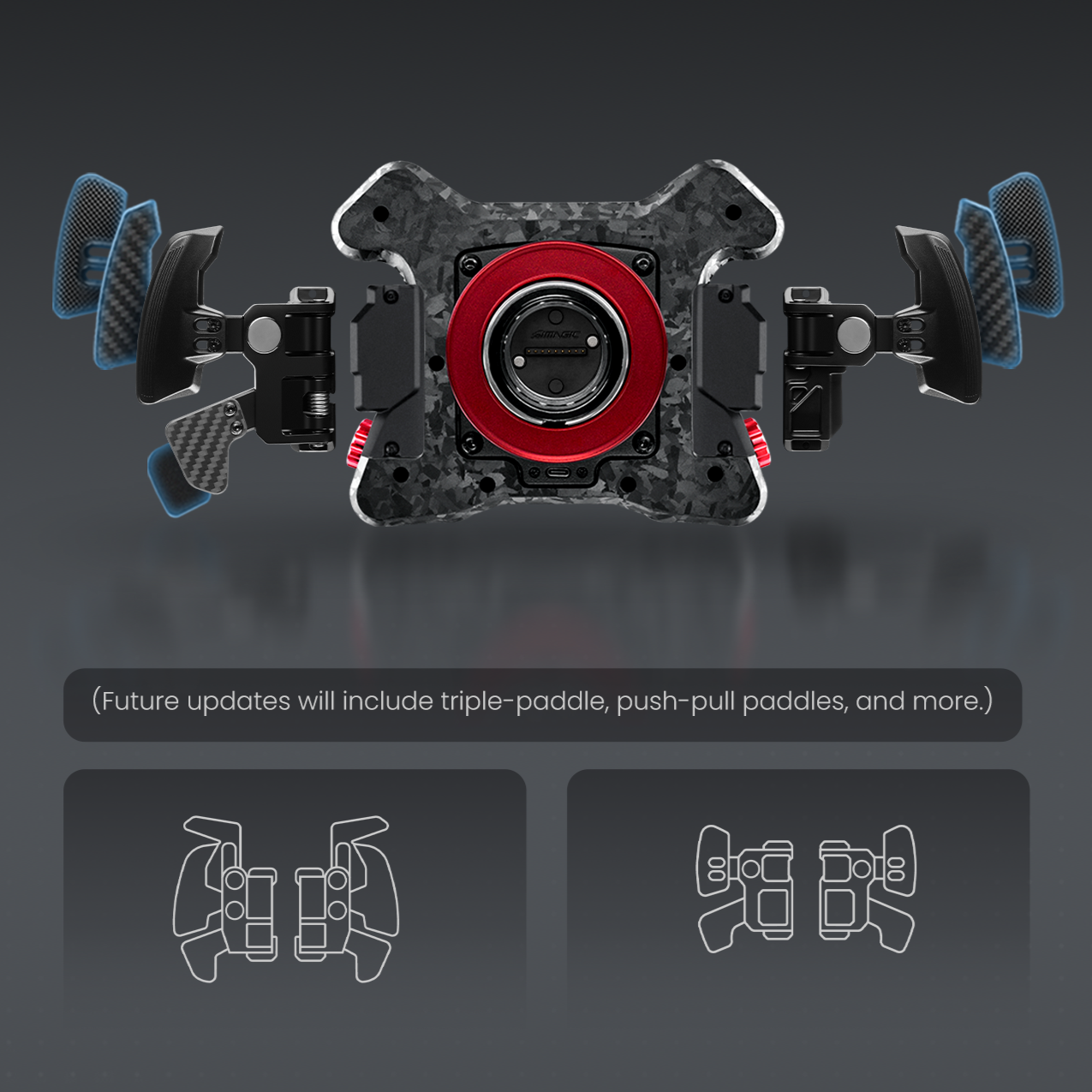 拨片形态可定制,配有专用调节配件,允许调节拨片长短和距离,可广泛兼容不同尺寸和形态的方向盘。